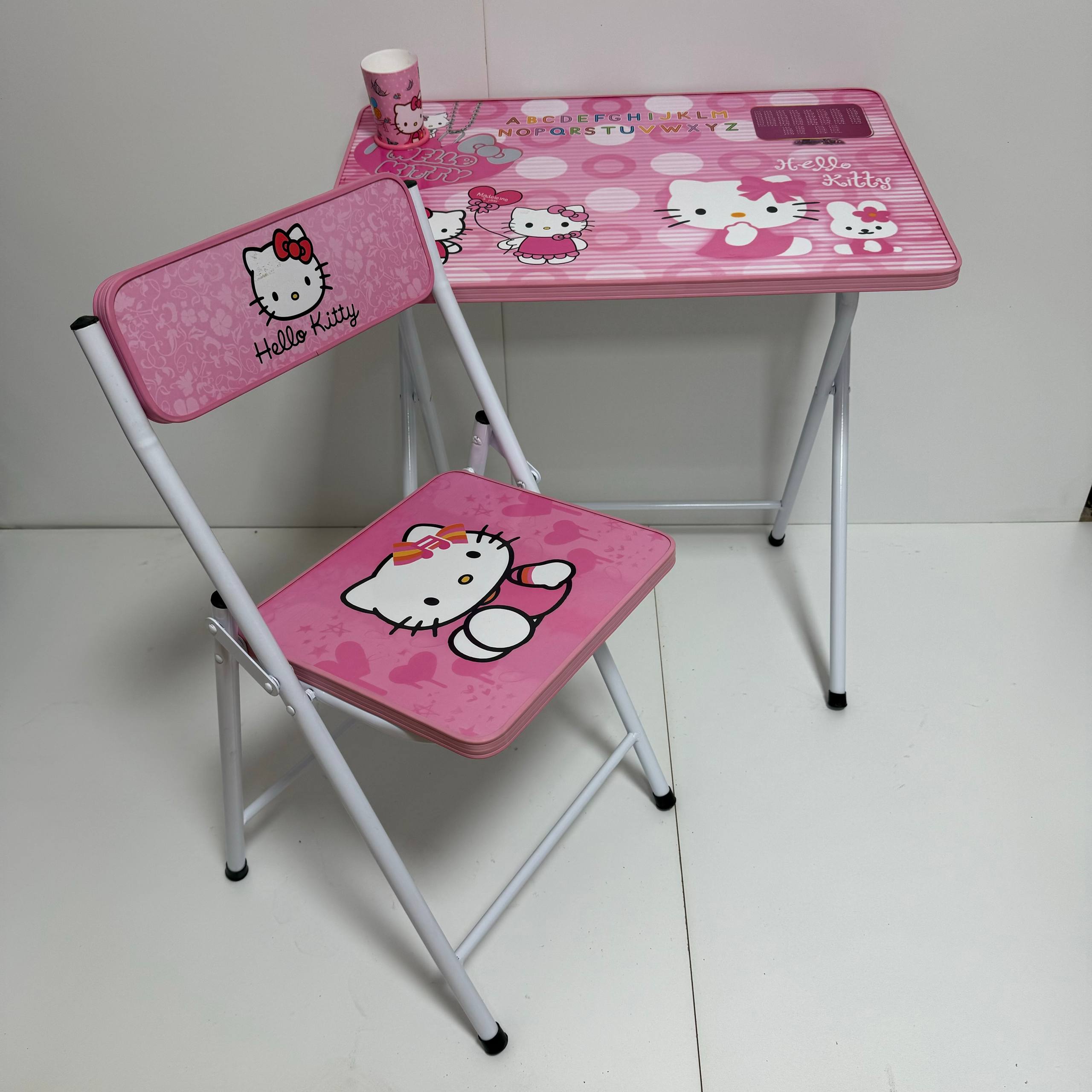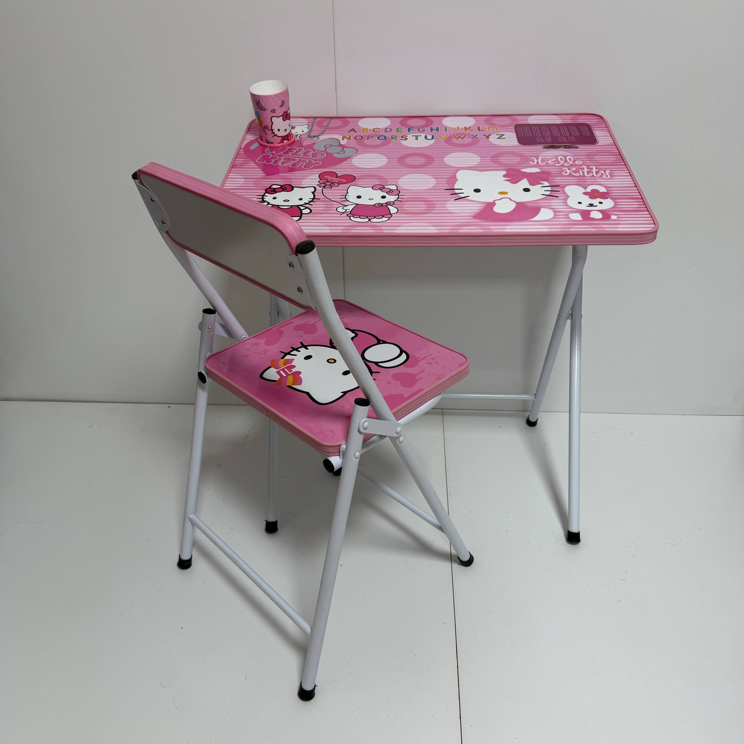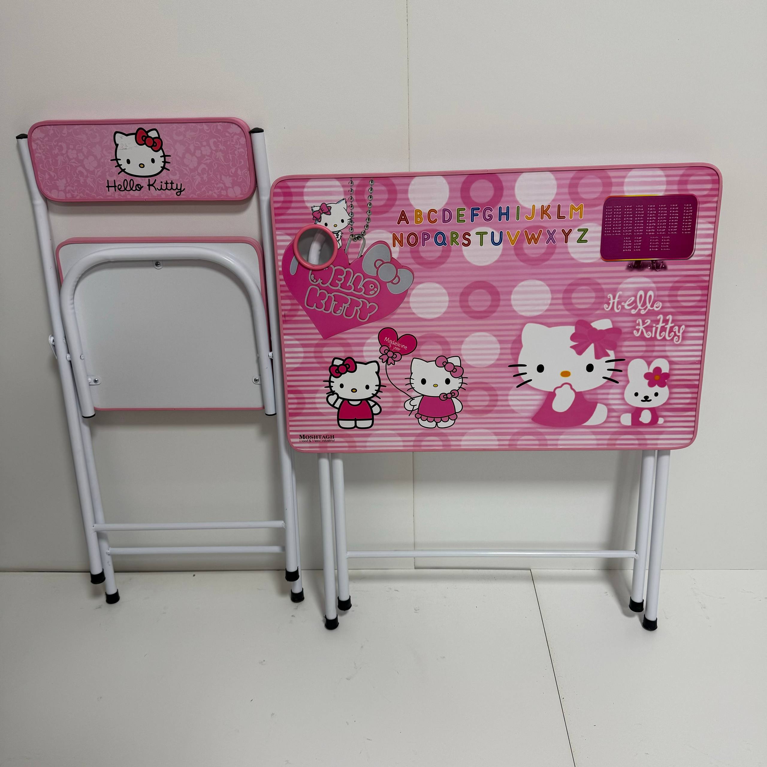 میز و صندلی کارتونی بدون باکس : تنظیم میز در ۳ ارتفاع متفاوت دارای بر چسب کارتونی سلفون دار (۷طرح ) با رنگ کوره ای الکترواستاتیک دارای جالیوانی