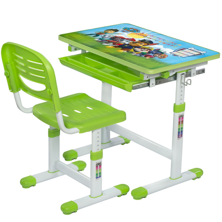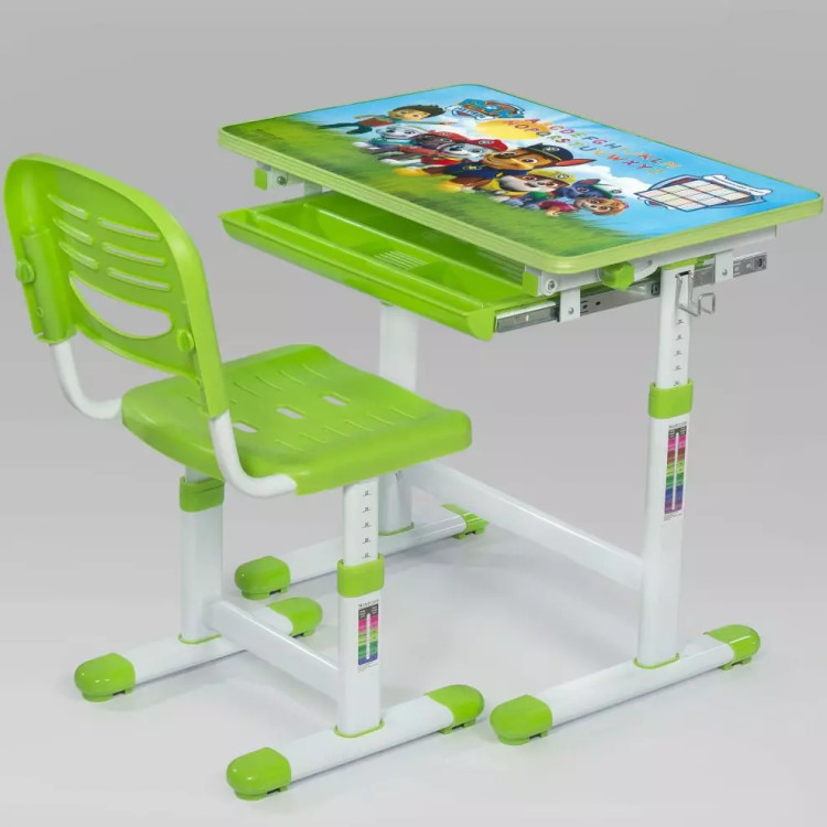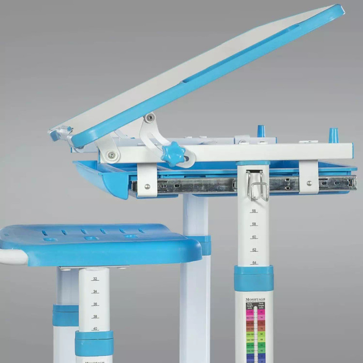 این محصول در ۵ طرح کارتونی و ۴ رنگ متفاوت تولید می شود. ارتفاع این میز و صندلی بدون باز و بست کردن پیچ و مهره، برای میز در ۱۱ حالت (۲۲ سانتیمتر) و برای صندلی در ۶ حالت (۱۲ سانتیمتر) مختلف قابل تنظیم است. دارای جا کتابی کشویی و آویز کیف مدرسه بوده و صفحه میز تا ۴۰ درجه زاویه قابل تنظیم می باشد.