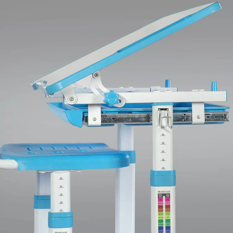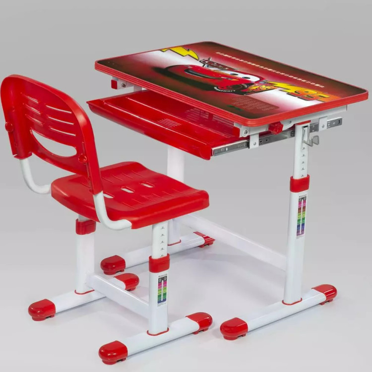 این محصول در ۵ طرح کارتونی و ۴ رنگ متفاوت بدون طرح تولید می شود. ارتفاع این میز و صندلی بدون باز و بست کردن پیچ و مهره، برای میز در ۱۱ حالت (۲۲ سانتیمتر) و برای صندلی در ۶ حالت (۱۲ سانتیمتر) مختلف قابل تنظیم است، دارای جا کتابی کشویی و آویز کیف مدرسه بوده و صفحه میز تا ۴۰ درجه زاویه قابل تنظیم می باشد.