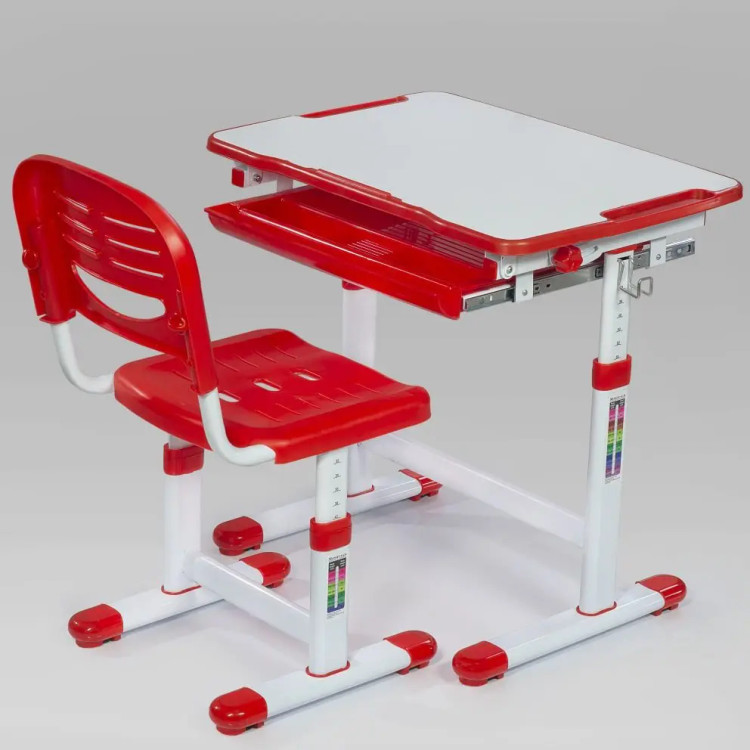 این محصول در ۵ طرح کارتونی و ۴ رنگ متفاوت تولید می شود. ارتفاع این میز و صندلی بدون باز و بست کردن پیچ و مهره، برای میز در ۱۱ حالت (۲۲ سانتیمتر) و برای صندلی در ۶ حالت (۱۲ سانتیمتر) مختلف قابل تنظیم است، دارای جا کتابی کشویی، آویز کیف مدرسه بوده و صفحه میز تا ۴۰ درجه زاویه قابل تنظیم می باشد.