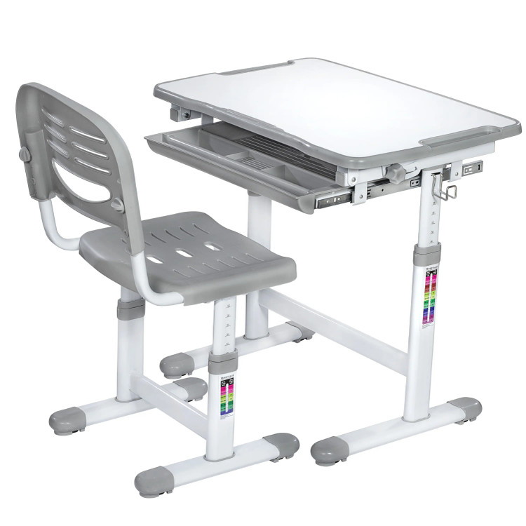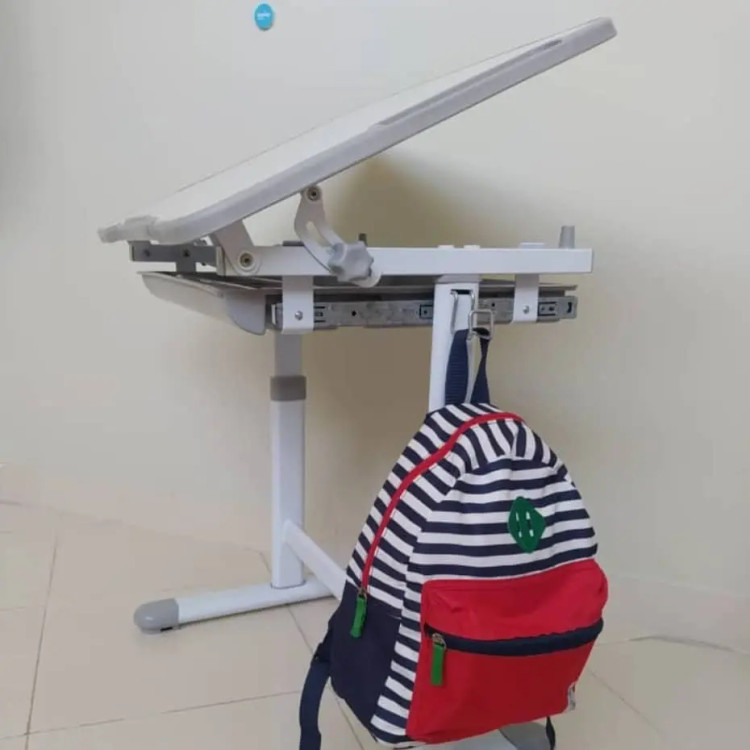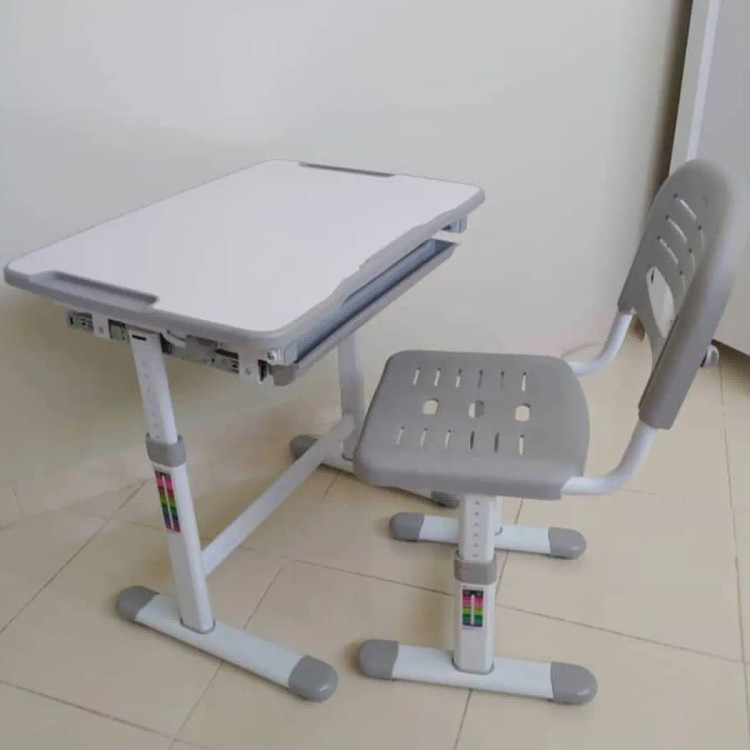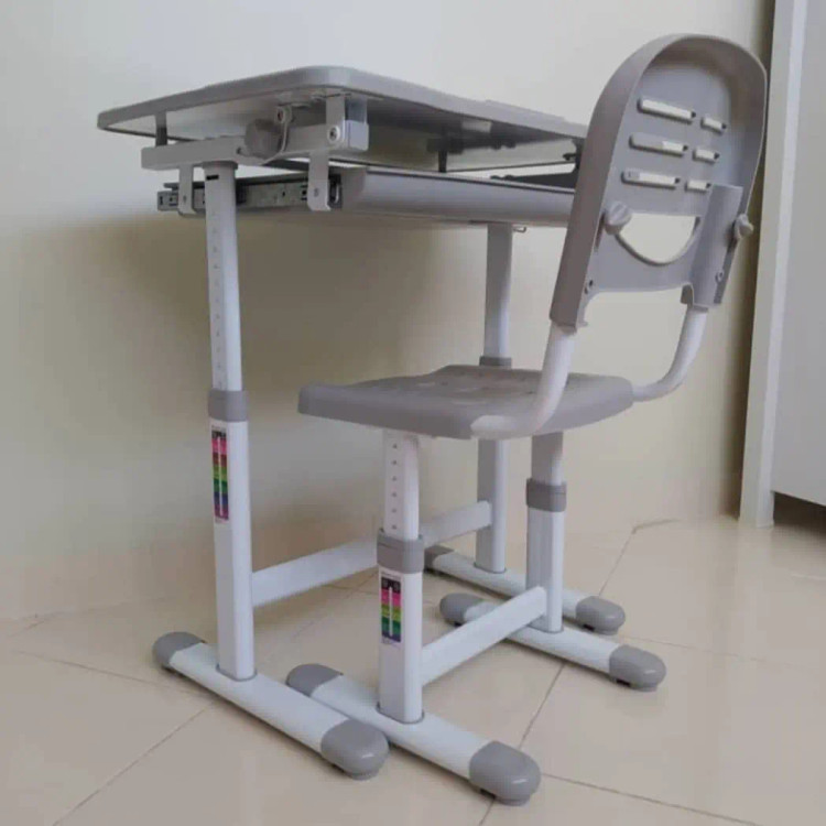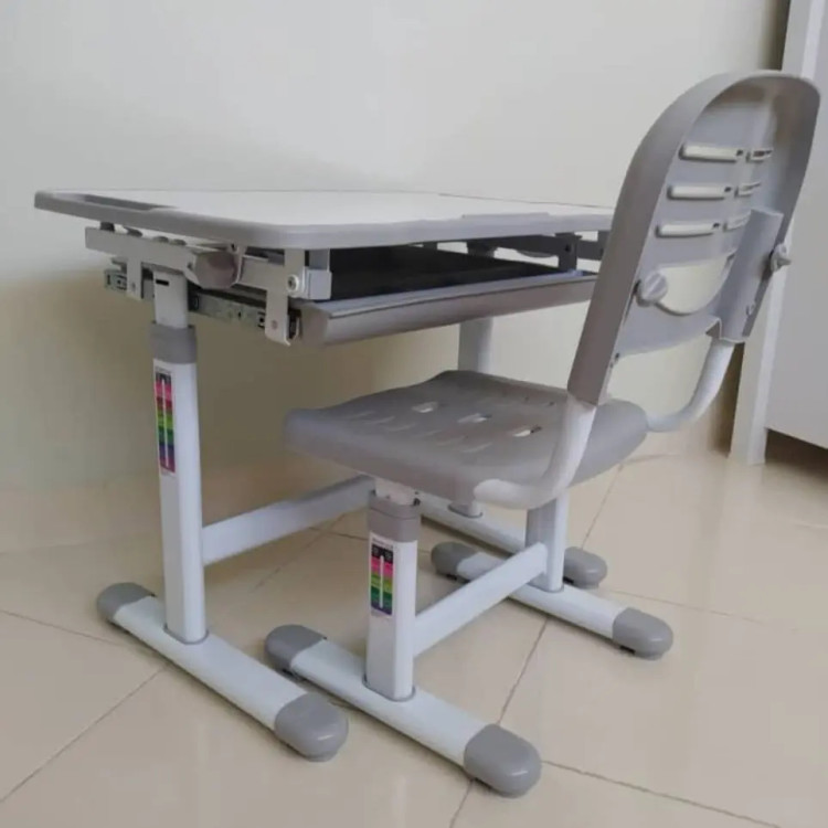 ارتفاع این میز و صندلی بدون باز و بست کردن پیچ و مهره (برای میز در ۱۱ حالت(۲۲ سانتیمتر) و برای صندلی در ۶ حالت (۱۲ سانتیمتر) مختلف) قابل تنظیم است، دارای جاکتابی کشویی، جا قلمی روی صفحه میز و آویز کیف بوده و صفحه میز تا ۴۰ درجه زاویه قابل تنظیم می باشد.