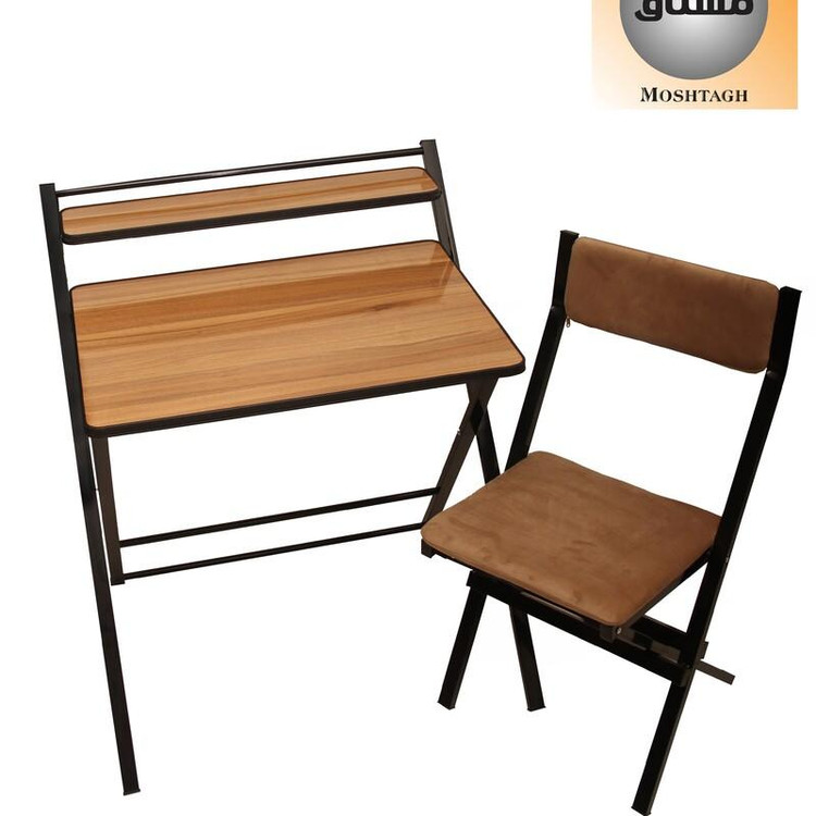 امکان ارسال از دفتر تهران برای تهران و شهرستانها میز تحریر نوجوانی دانشجویی تاشو با صندلی پارچه ای برای نرم بودن نشیمن و پشتی، محصول ابتکاری صنایع چوبی و فلزی مشتاق