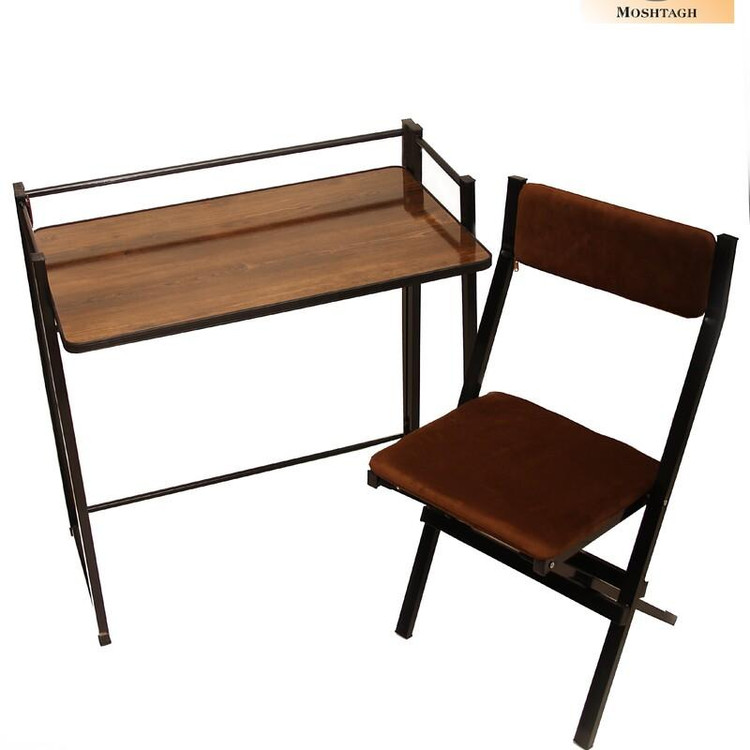 امکان ارسال از دفتر تهران برای تهران و شهرستانها میز تحریر نوجوانی دانشجویی تاشو با صندلی پارچه ای برای نرم بودن نشیمن و پشتی، محصول ابتکاری صنایع چوبی و فلزی مشتاق